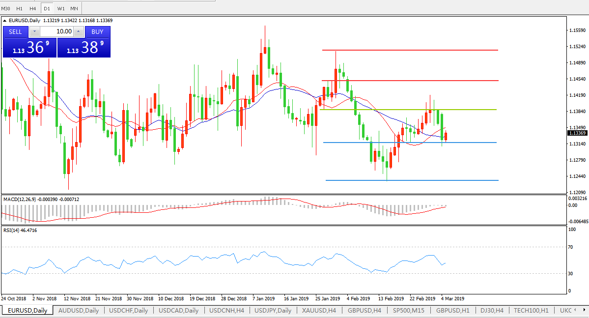 基本面分析:3月4日欧美时段,欧元兑美元转跌并快速扩大跌幅。汇价创五个交易日新低至1.1300附近。本周欧元面临的主要风险事件无疑是3月7日的欧洲央行会议。欧银料将下调其经济增长和通胀预期。贸易流动的潜在中断也可能损害欧元。加拿大国民银行的分析团队表示,由于经济数据疲弱,欧元今年以来一直承受压力,欧洲央行不太可能获得太多帮助,欧洲央行将在3月份会议上将下调欧元区GDP增长和通胀预测。