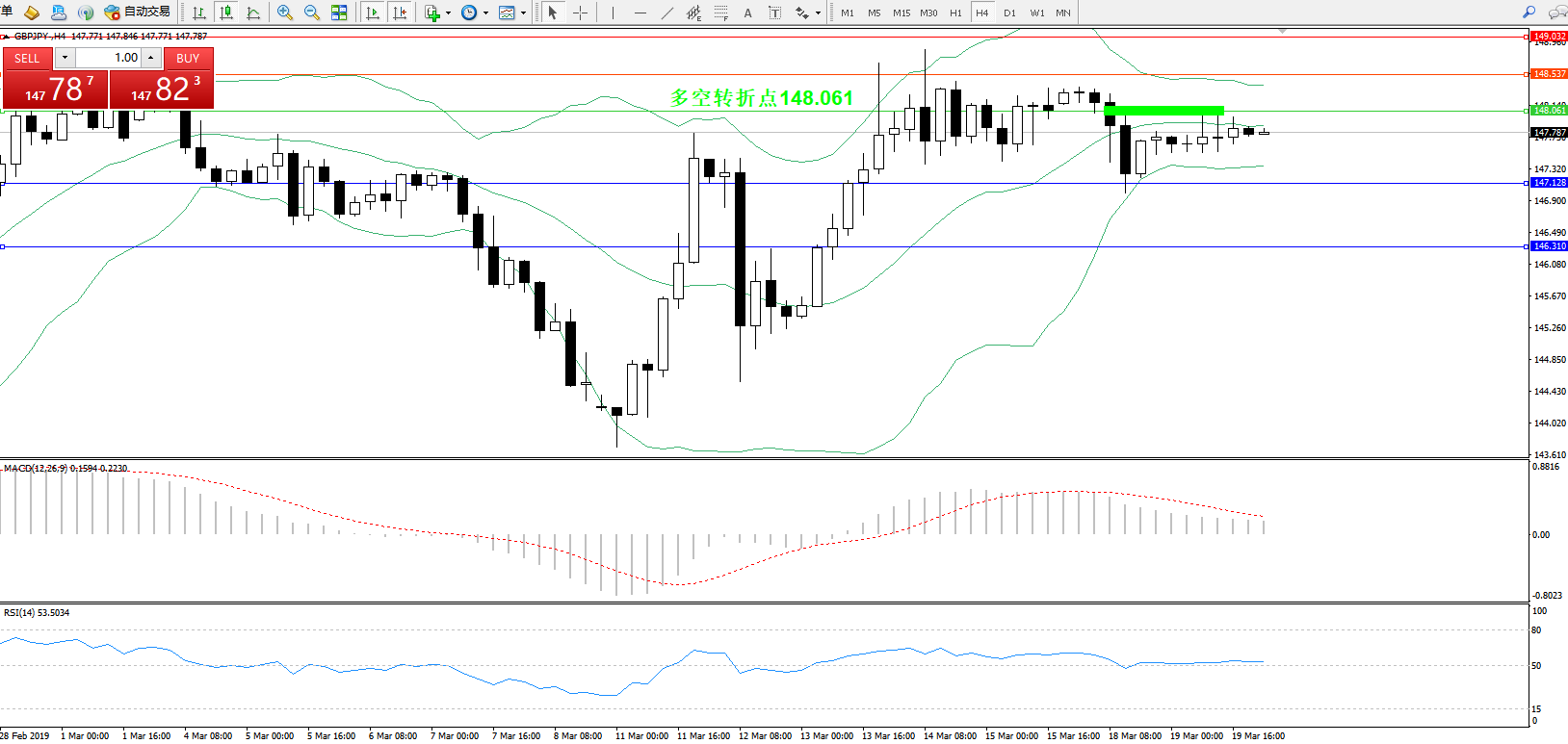 交易策略:148.061下方看跌,目标147.128146.310