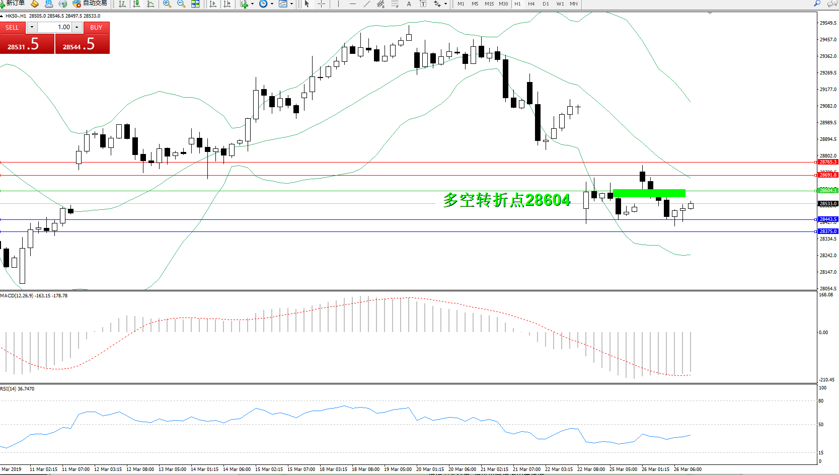 恒指HK50 ——1小时K线图显示: