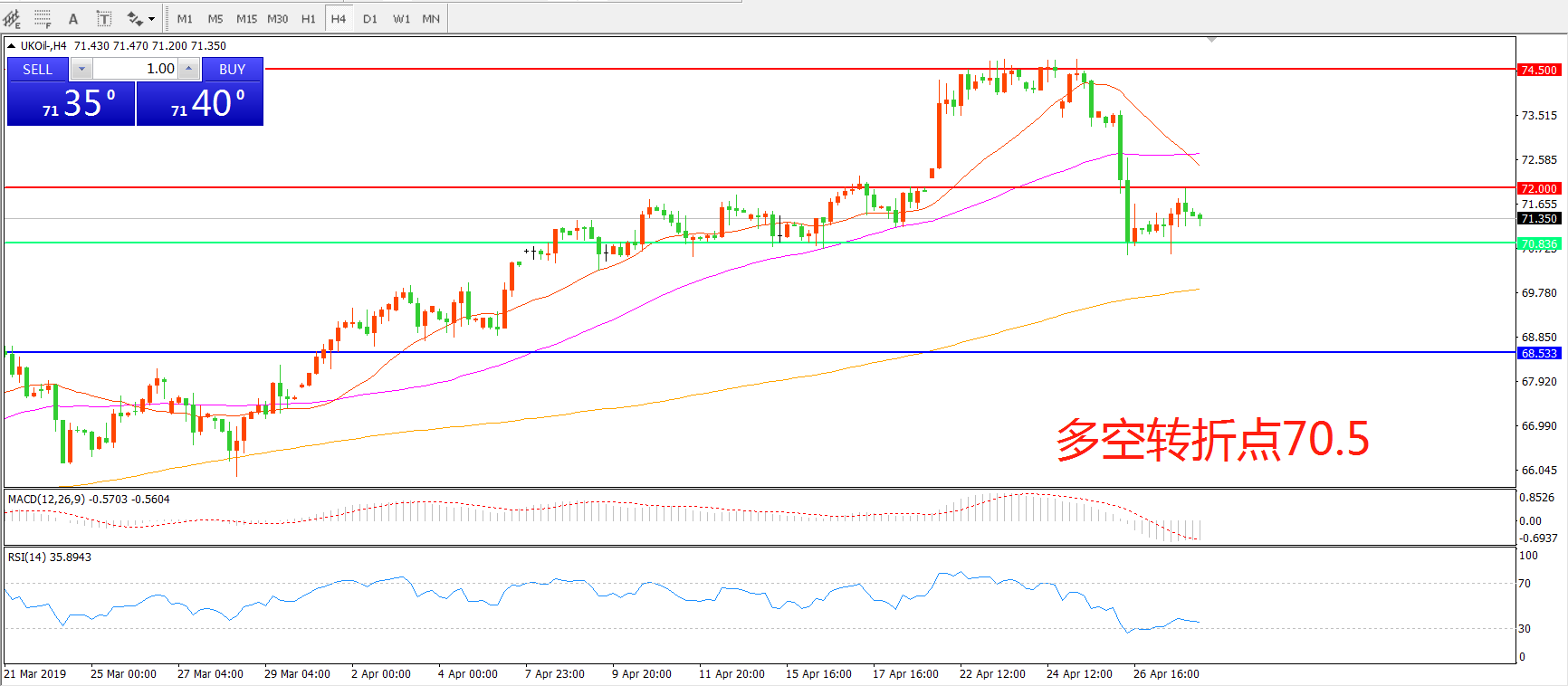 多空转折点:70.50