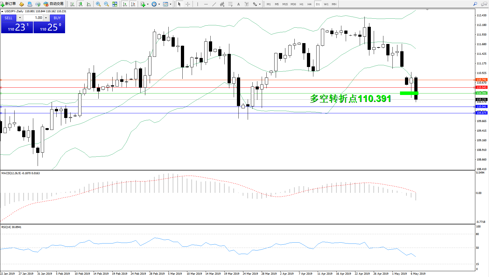 交易策略:110.391下方看跌,目标110.041、109.874