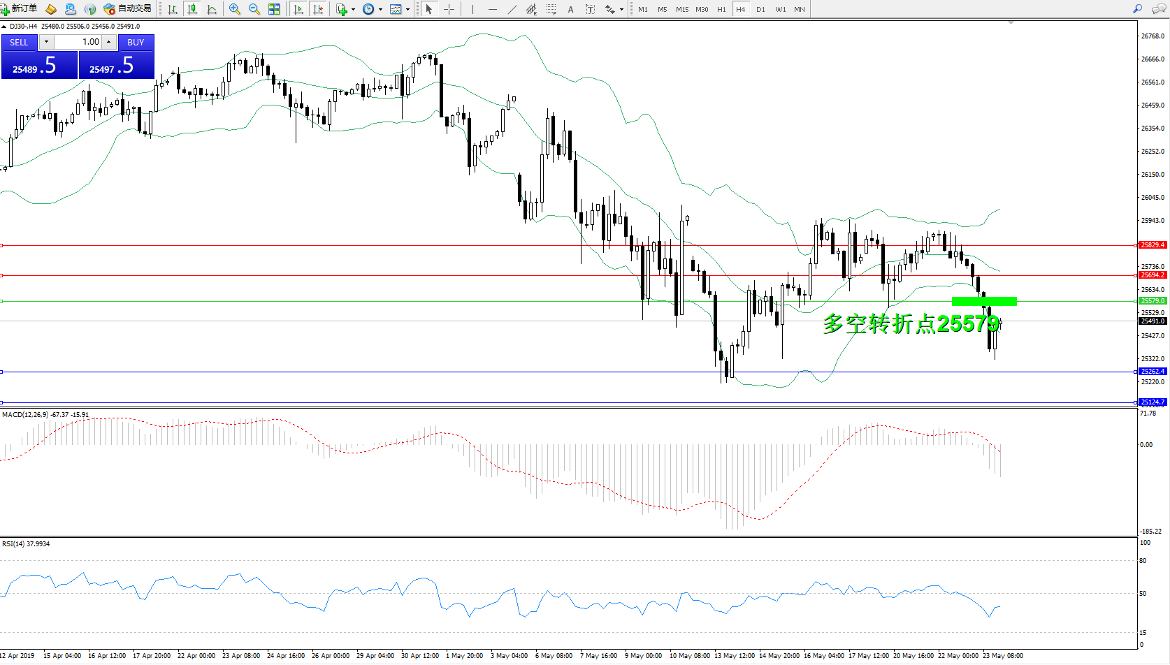 交易策略:25579下方看跌,目标25262、25124