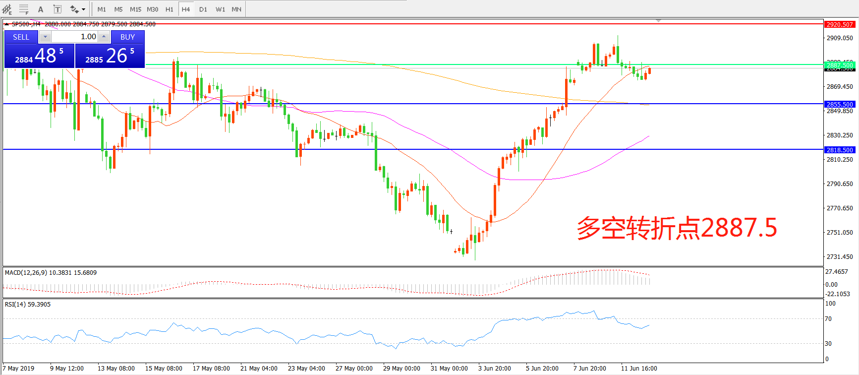 多空转折点:2887.50