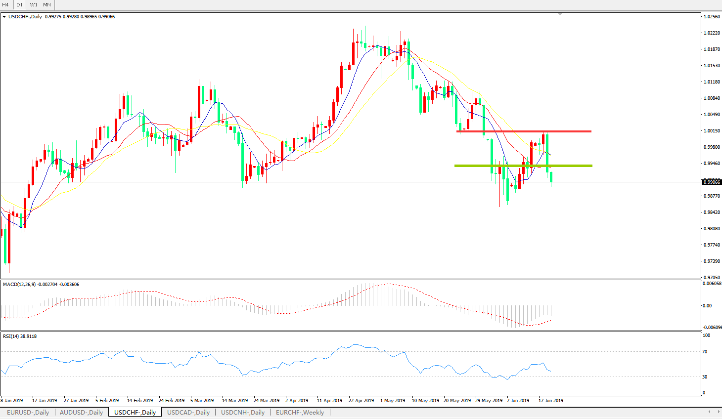 交易策略:0.9960下方看跌,目标0.9890、0.9850
