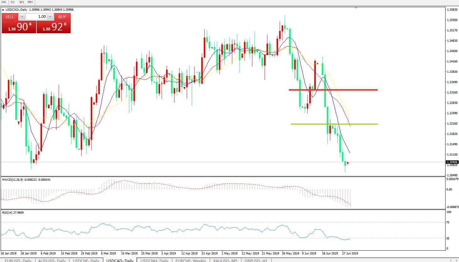 技术面简析:日线图均线有序空头排列价格连续大跌亟待修正MACD在0轴下方运行且动能柱放量中RSI跌入超卖区域短线汇价存反弹修正需求,中期预计汇价将进一步下行
