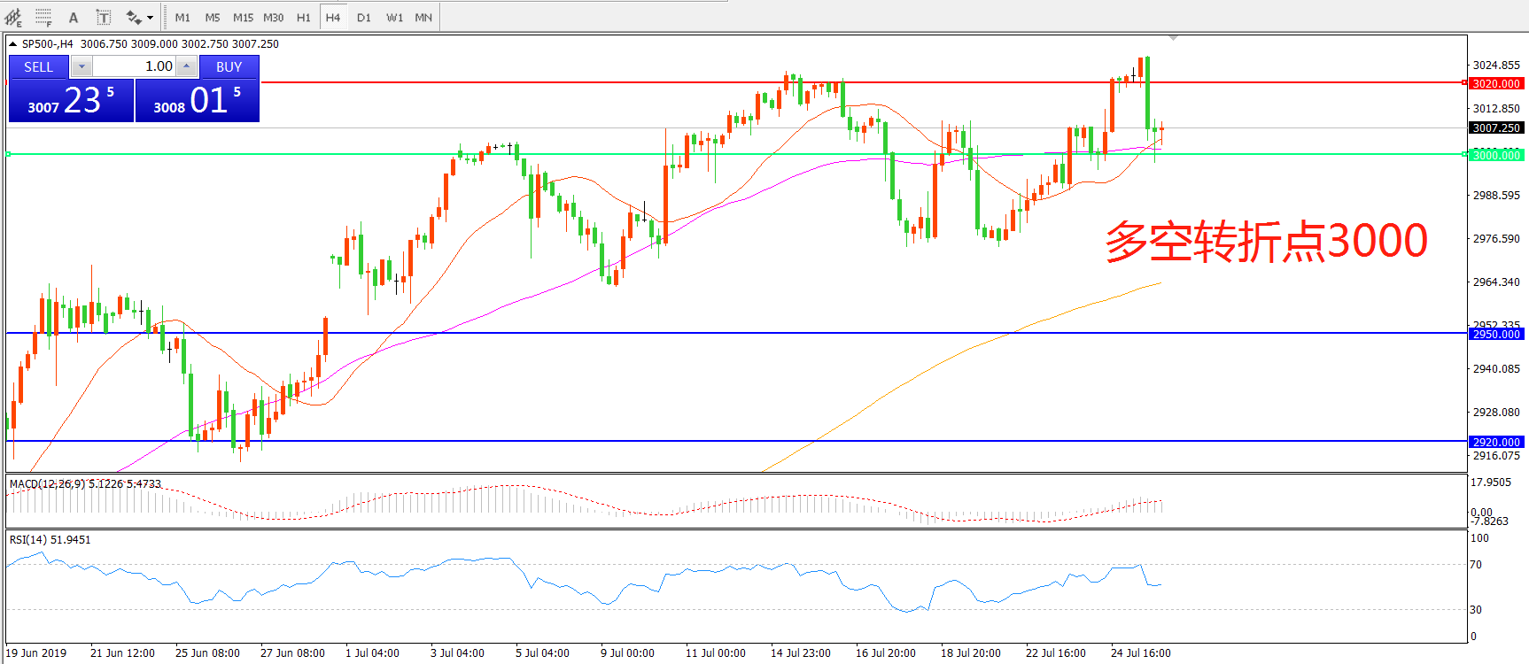 多空转折点:3000.00