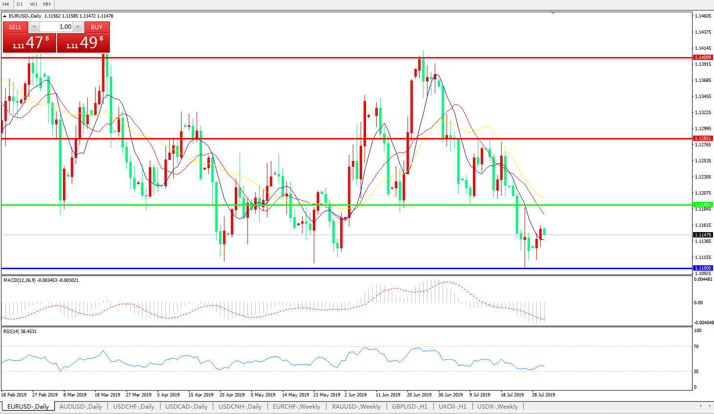 支撑位:1.1190、1.1110