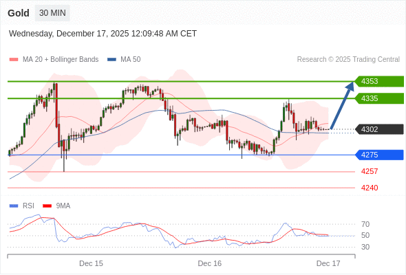 在 4275 之上,看涨,目标价位为 4335 ,然后为 4353 。