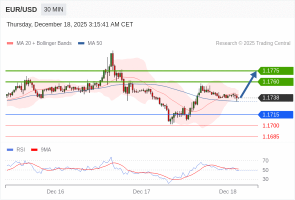 在 1.1715 之上,看涨,目标价位为 1.1760 ,然后为 1.1775 。