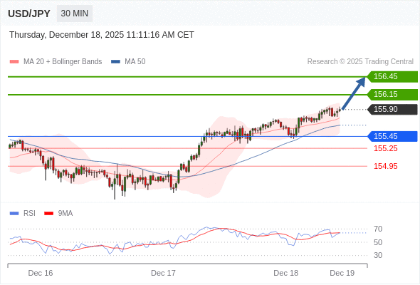 在 155.45 之上,看涨,目标价位为 156.15 ,然后为 156.45 。