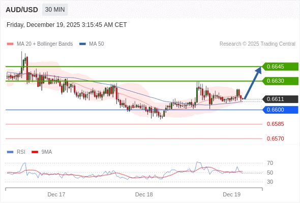 在 0.6600 之上,看涨,目标价位为 0.6630 ,然后为 0.6645 。
