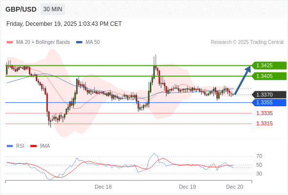 在 1.3355 之上,看涨,目标价位为 1.3405 ,然后为 1.3425 。