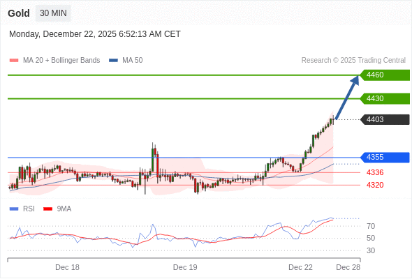 在 4355 之上,看涨,目标价位为 4430 ,然后为 4460 。
