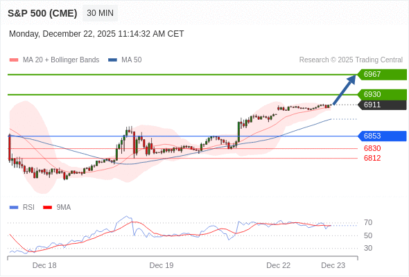 在 6853 之上,看涨,目标价位为 6930 ,然后为 6967 。