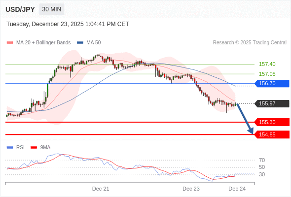 在 156.70 之下,看跌,目标价位为 155.30 ,然后为 154.85 。