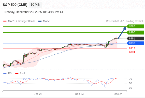 在 6937 之上,看涨,目标价位为 6990 ,然后为 7020 。