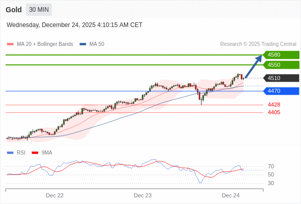 在 4470 之上,看涨,目标价位为 4550 ,然后为 4580 。