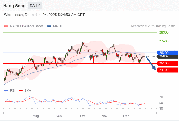 在 26200 之下,看跌,目标价位为 25100 ,然后为 24400 。