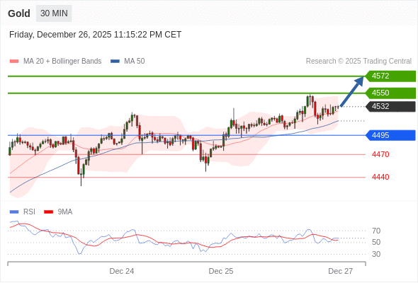 在 4495 之上,看涨,目标价位为 4550 ,然后为 4572 。