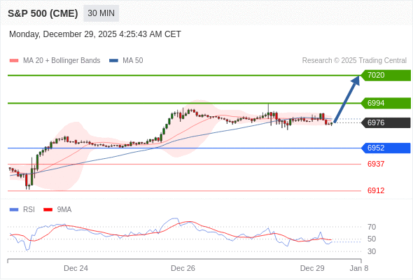 在 6952 之上,看涨,目标价位为 6994 ,然后为 7020 。