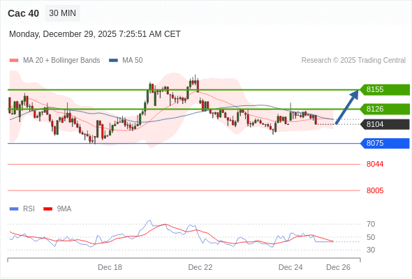 Cac 40 当日内: 超短线(当日内)支撑位在8075附近。