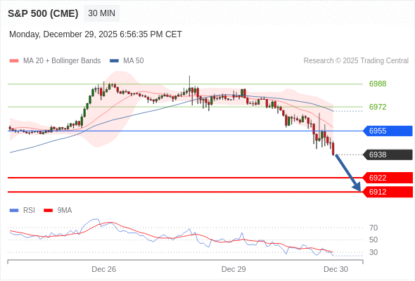 在 6955 之下,看跌,目标价位为 6922 ,然后为 6912 。