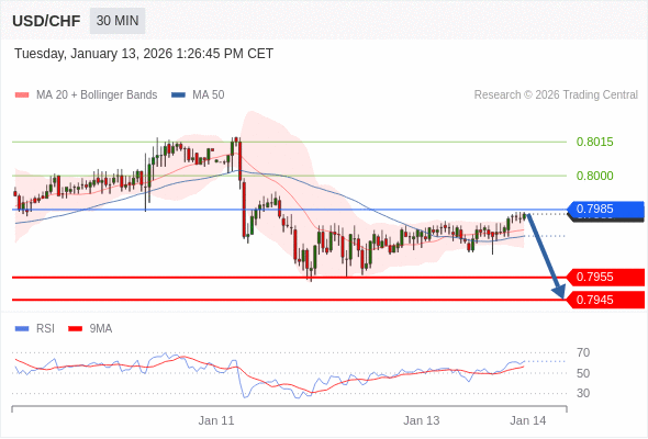 交易策略: 在 0.7985 之下,看跌,目标价位为 0.7955 ,然后为 0.7945 。