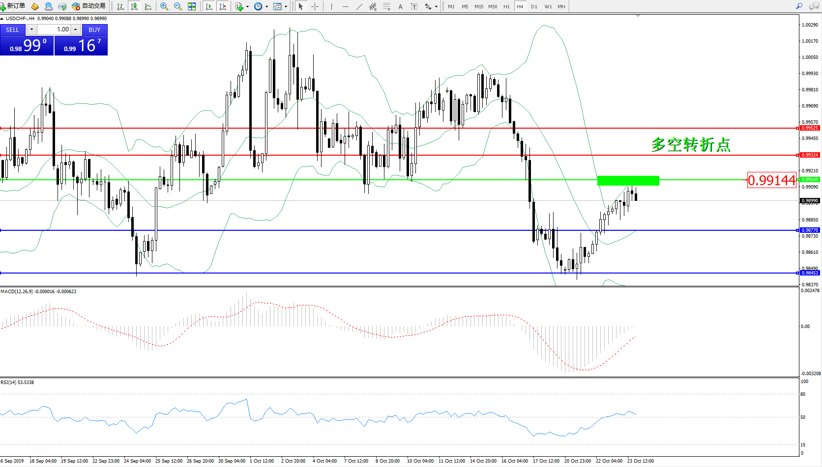 交易策略:0.99144下方看跌,目标0.987700.98453