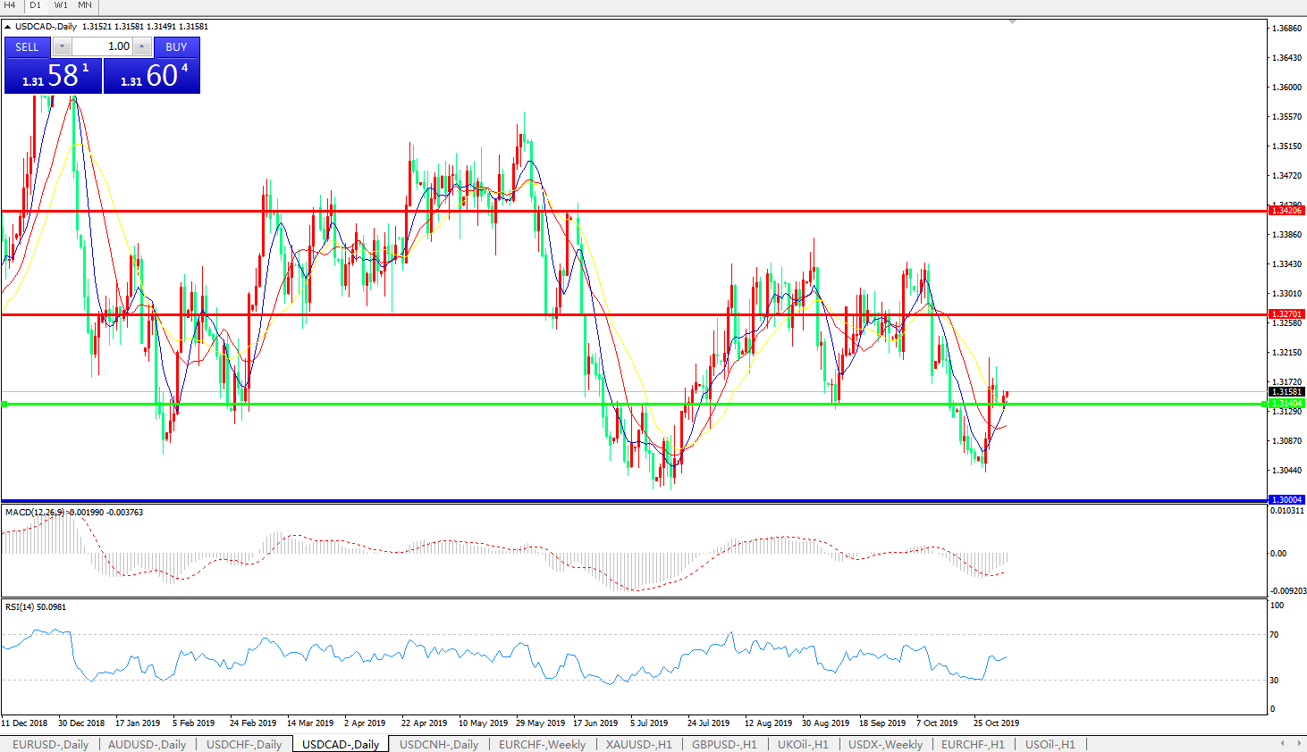 美元兑加元USDCAD 日线图: