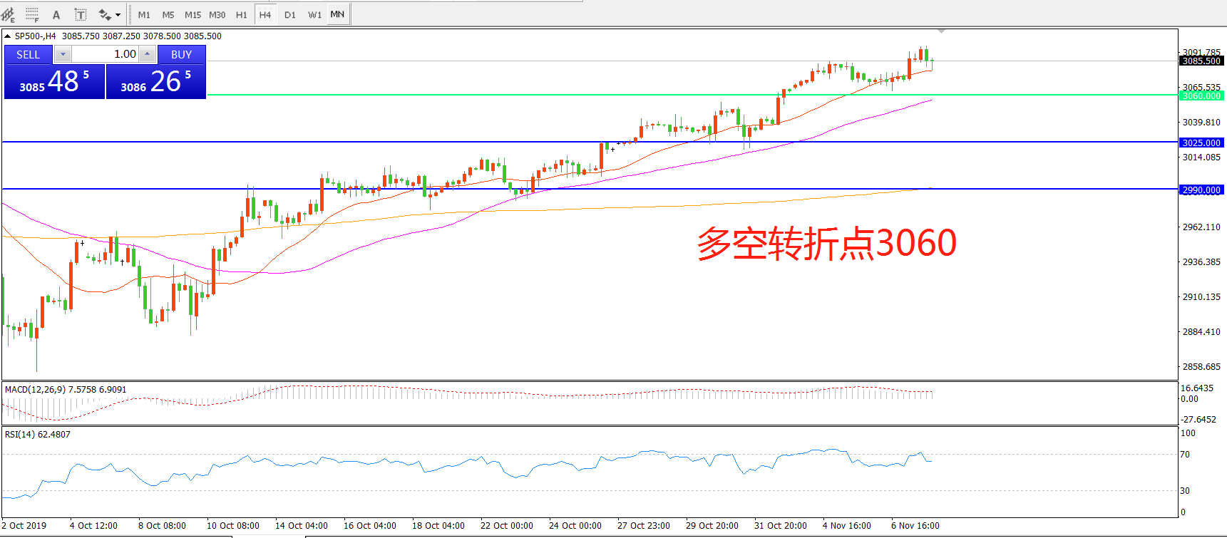 多空转折点:3060.00