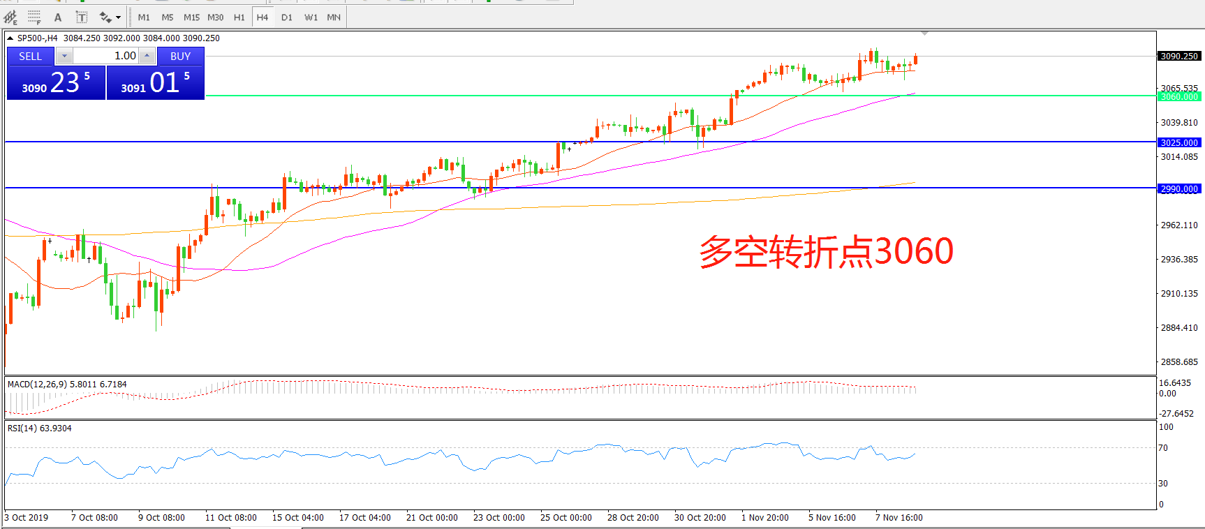 多空转折点:3060.00