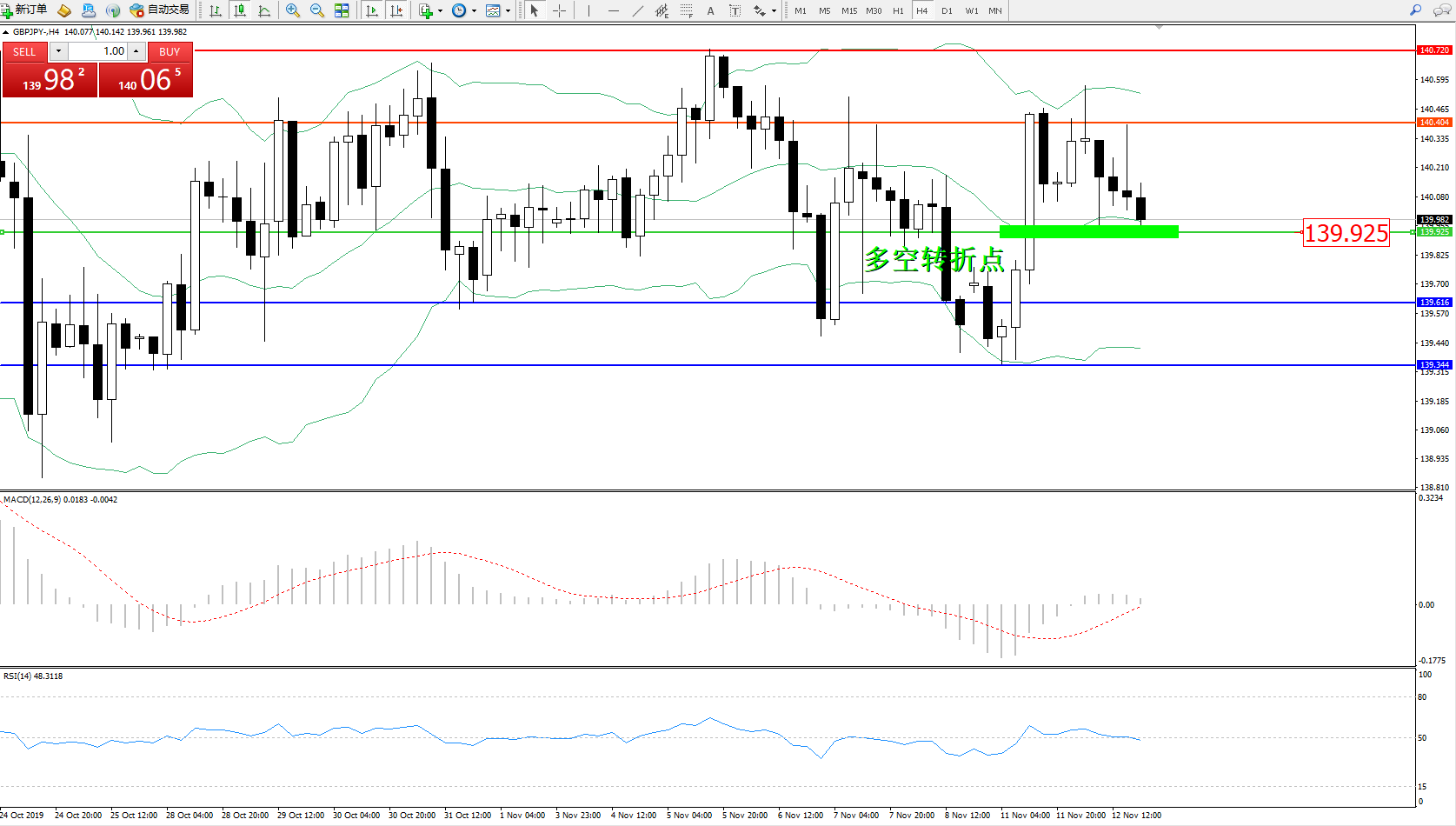 交易策略:139.925上方看涨,目标140.404、140.720