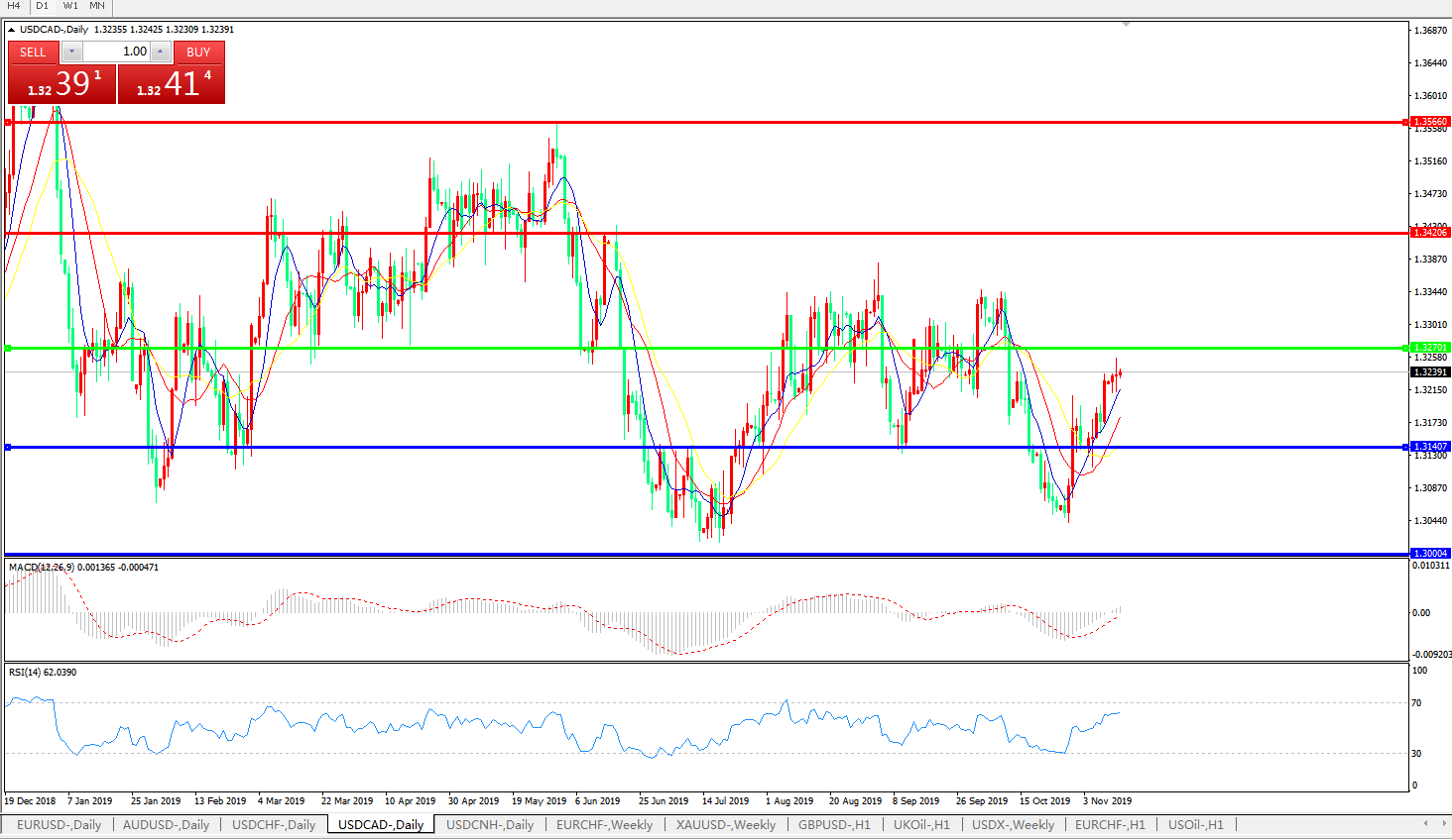美元兑人民币USDCNH 日线图: