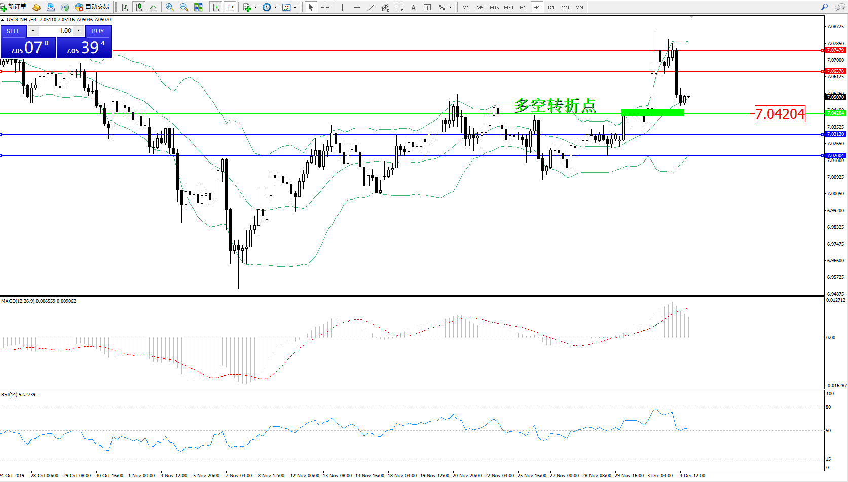 交易策略:7.04204上方看涨,目标7.06378、7.07479
