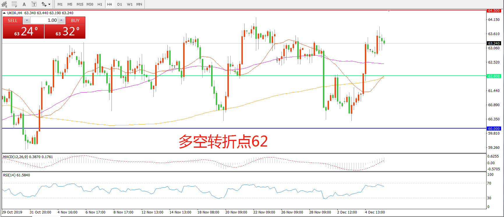 交易策略:在62.00之上看涨,目标64.50 66.00
