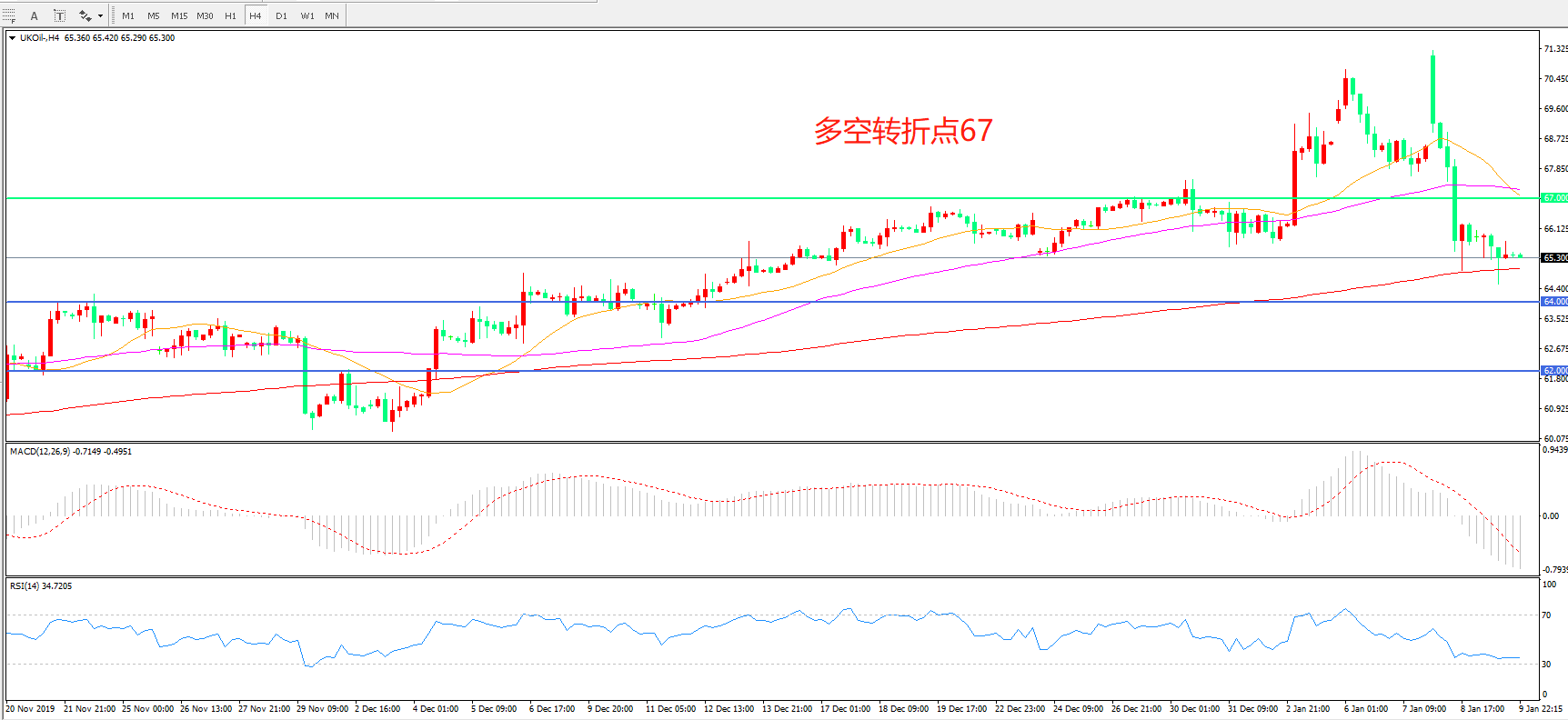 多空转折点:67.00