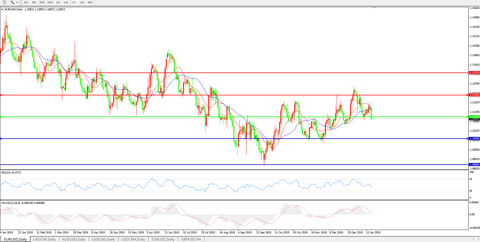交易策略:1.1100下方看跌,目标1.1000、1.0880
