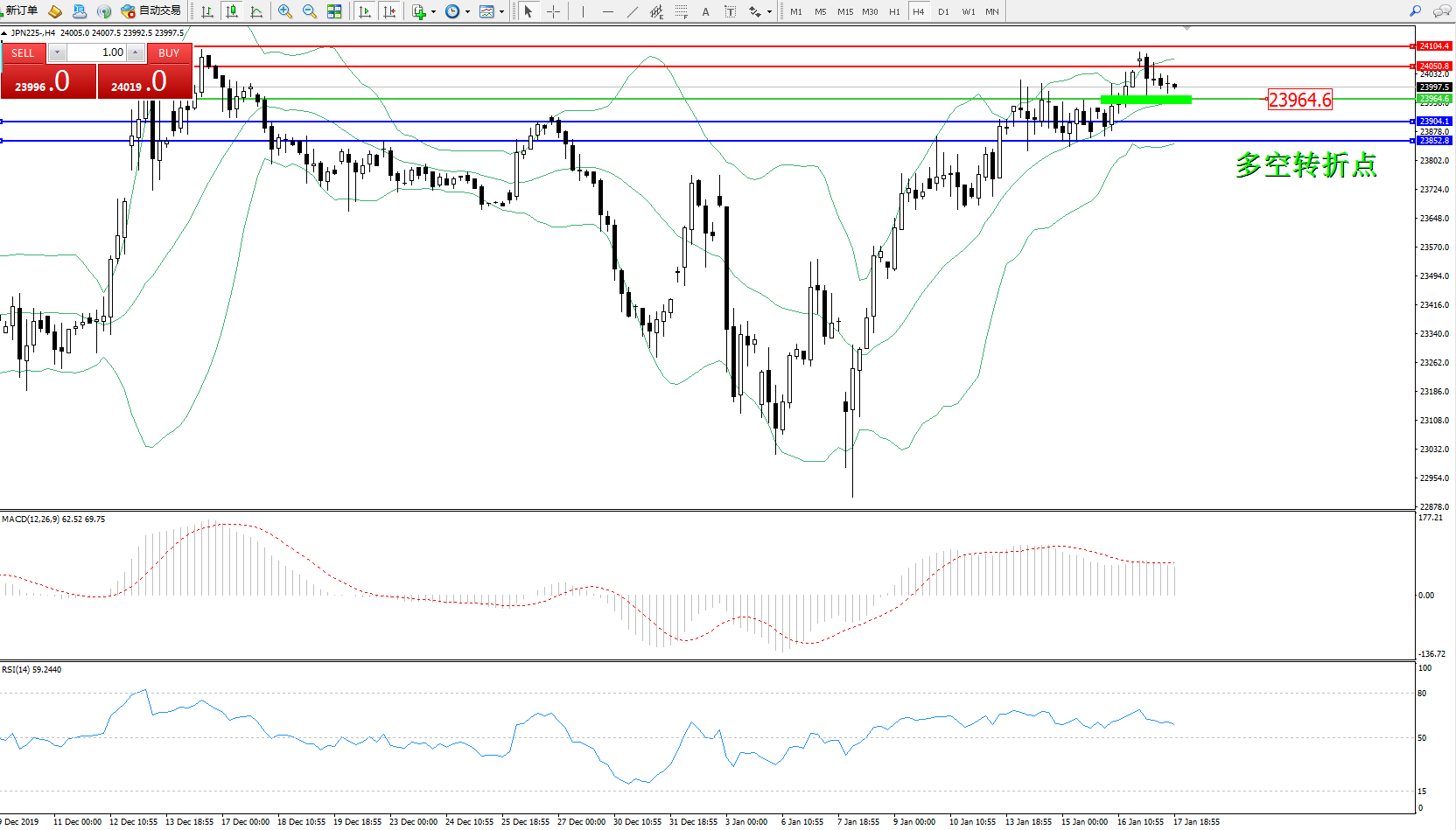 日经225指数117日(周五)收盘上涨111.87点,涨幅0.47%,报24045.00点。日本内阁办公室公布中期经济预期,日本的基本观点是,当前十年不会实现预算平衡,此前的基准观点并未排除2029财年实现基本平衡。日本央行将于下周一至二(2021)召开议息会议,外界普遍预期会议将维持货币政策不变,因为早前央行才上调经济预测。日本经济将继续温和扩张,全球经济增长放缓对内需产生的涟漪效应有限。