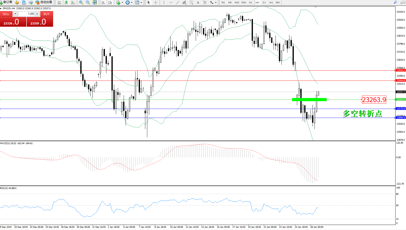 日经指数JPN225——4小时K线图:
