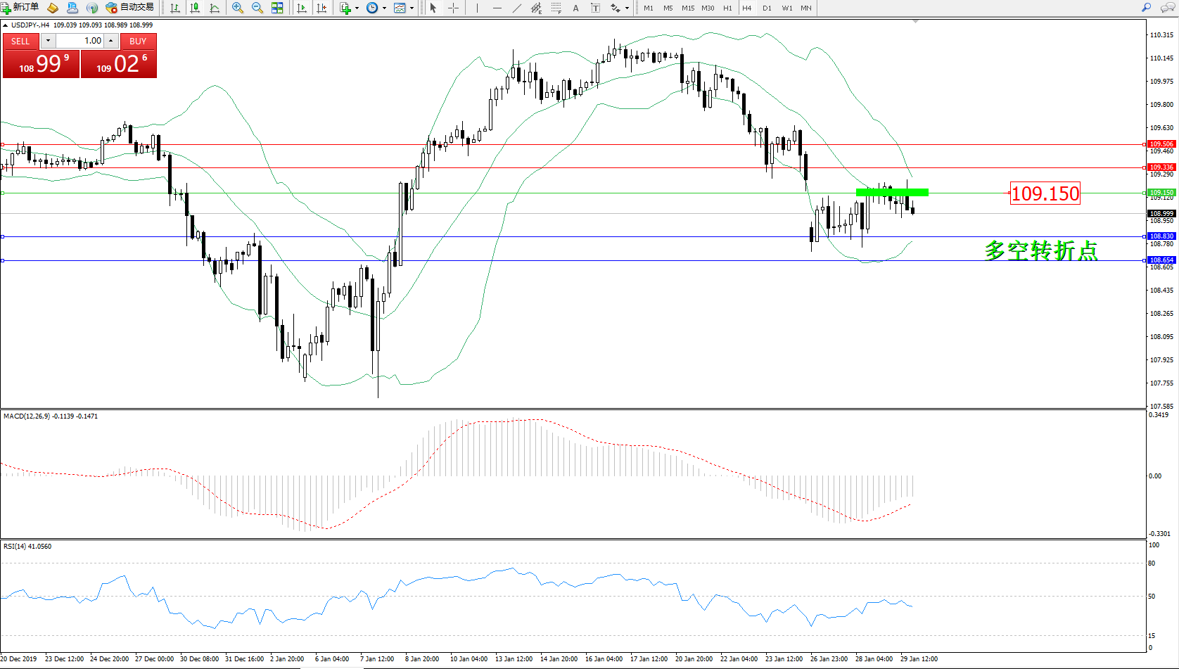 交易策略:109.150下方看跌,目标108.830108.654