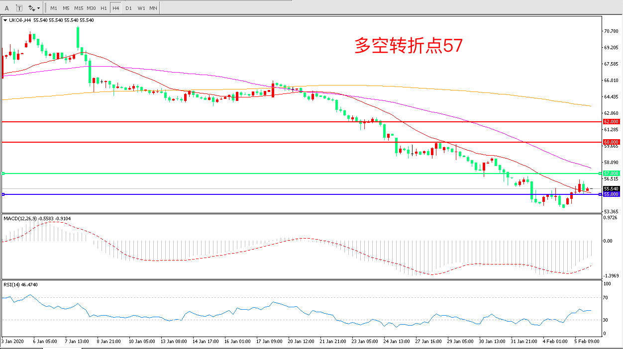 交易策略:在57.00之下看跌,目标55.00    52.00