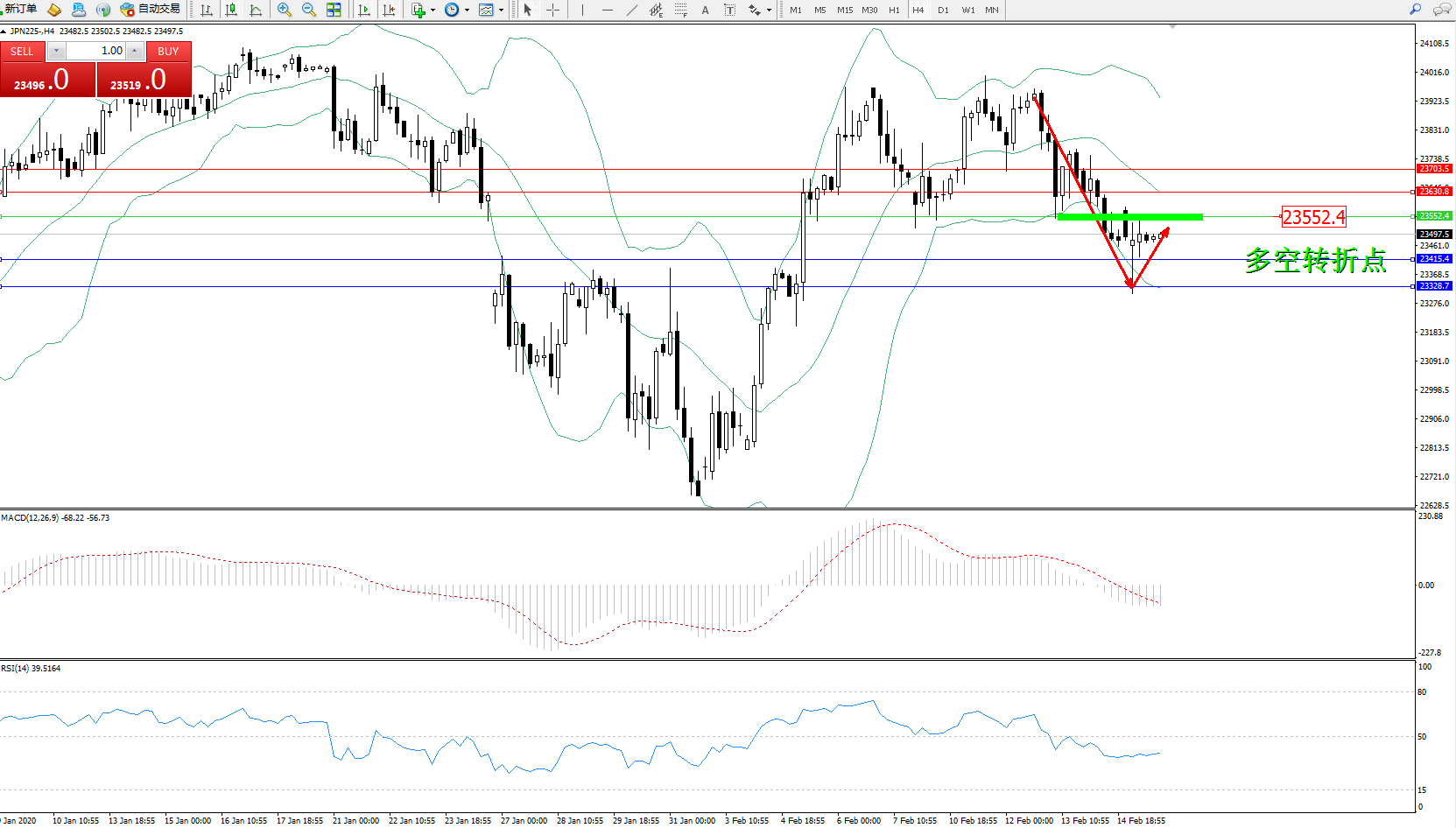 交易策略:23552下方看跌,目标23415、23328