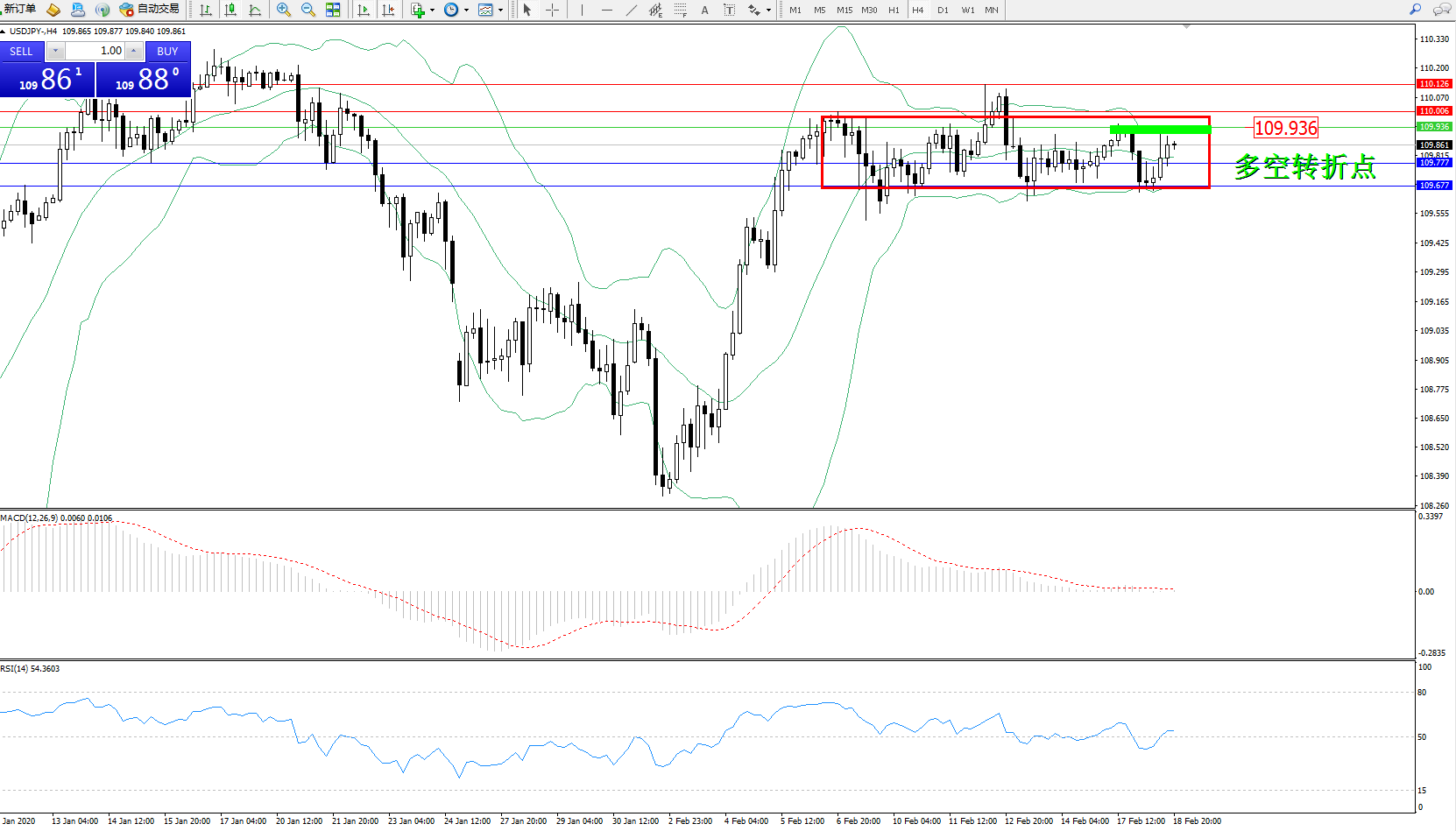 交易策略:109.936下方看跌,目标109.777109.677