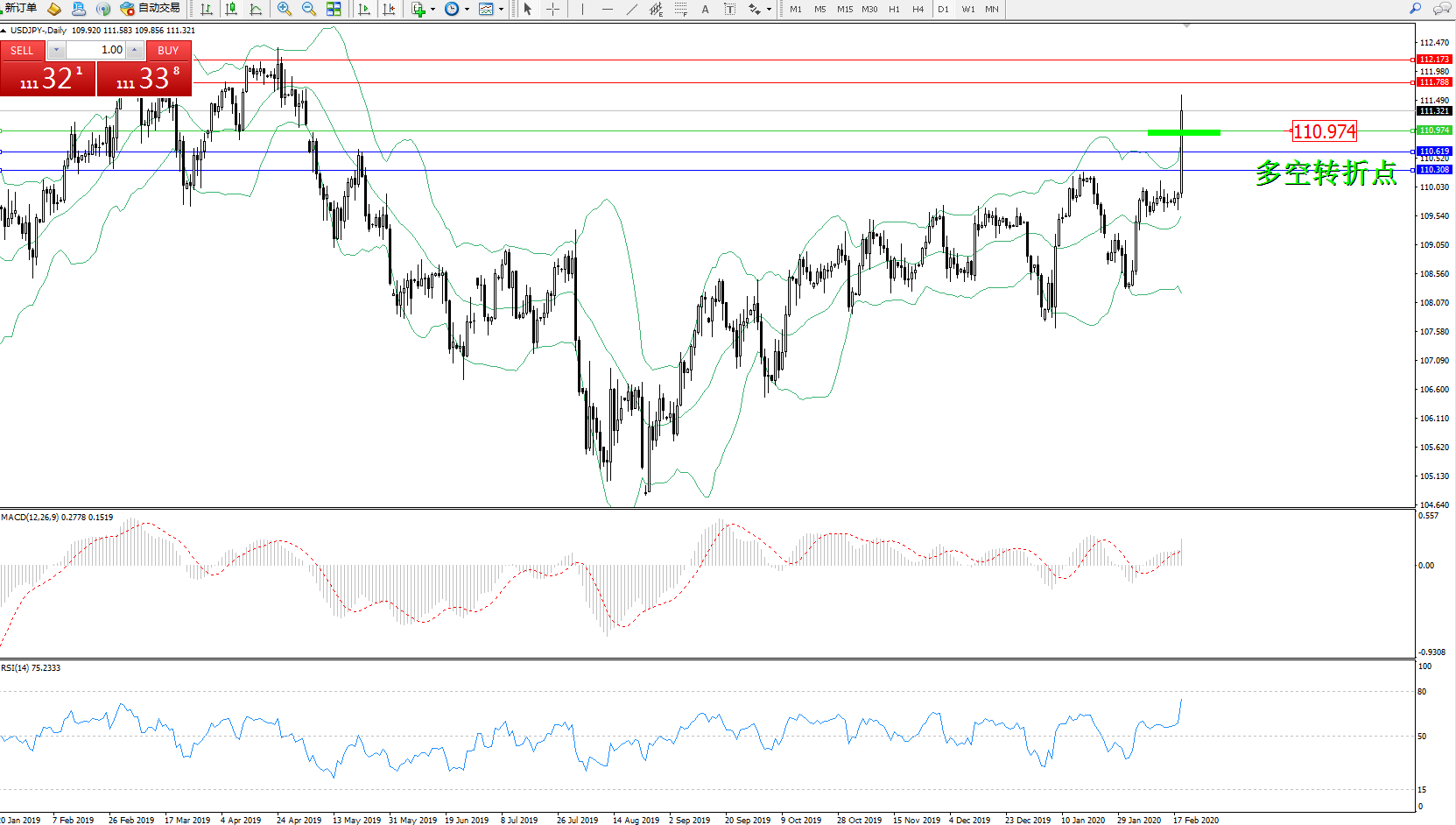 交易策略:110.974上方看涨,目标111.788112.173
