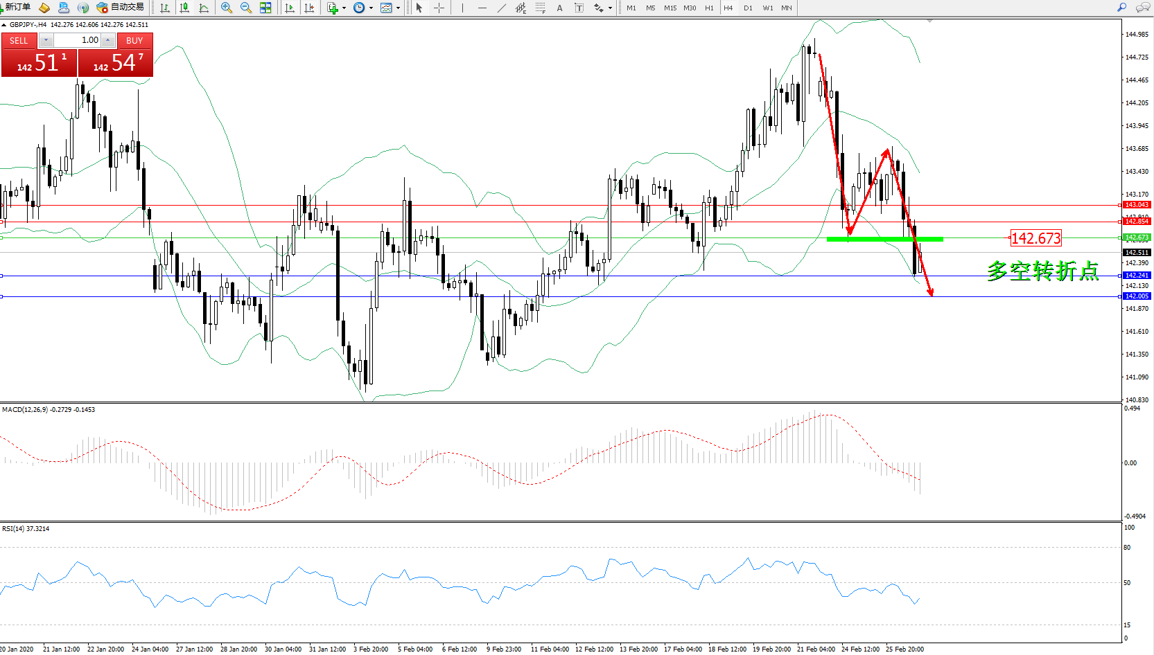 交易策略:142.673下方看跌,目标142.241142.005