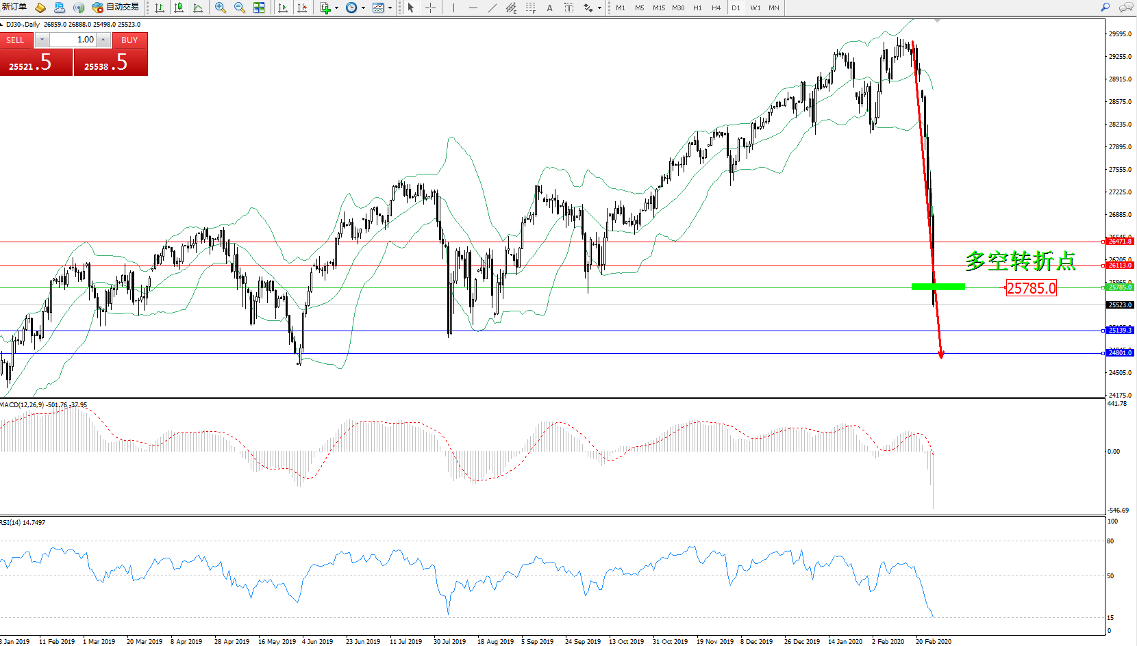道琼斯指数2月27日(周四)收盘下跌1191.60点,跌幅4.42%,报25766.03点。美股三大股指大幅收跌,道指跌超1000点;美国股市恐慌指标突破上次熊市临近时的水平,全球股市今年料继续上涨,但出现10%或更大幅度修正的可能性高,最大的风险是公共卫生事件对经济造成严重冲击。去年是股市的丰收年,调查的17大全球股指全部收高,而且只有一个股指的升幅没有达到两位数。但是今年迄今,除一个股指外,其他股指全部下跌,其中大部分跌幅都出现在过去五个交易日,因担心公共卫生事件大流行、扰乱供应链,并对全球经济产生重大冲击。公共卫生事件可能造成严重经济损害,甚至引发全球经济衰退的担忧,已经打击MSCI全球所有国家指数跌至两个半月低点,仅仅本周全球股市市值就蒸发近3万亿美元