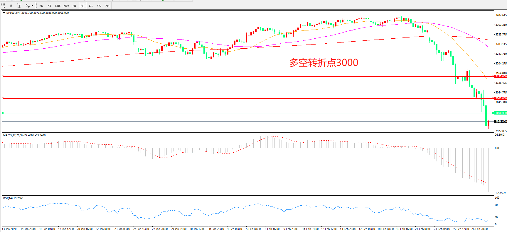 周四(2月27日),新冠肺炎在全球范围内加速蔓延,受恐慌情绪影响,美股再遭血洗,三大股指跌幅超过4.4%,标普500大幅“跳水”,收报2948.75点。大型科技股全线下跌,亚马逊跌4.81%,苹果跌6.54%,中概股多数下跌,网易跌6.92%,微博跌0.94%。高盛的策略师表示,标普500指数的修正期平均为四个月,但因新型冠状病毒疫情传播的不确定性以及美联储决策者面临的限制,这次回调可能会持续更长的时间。
