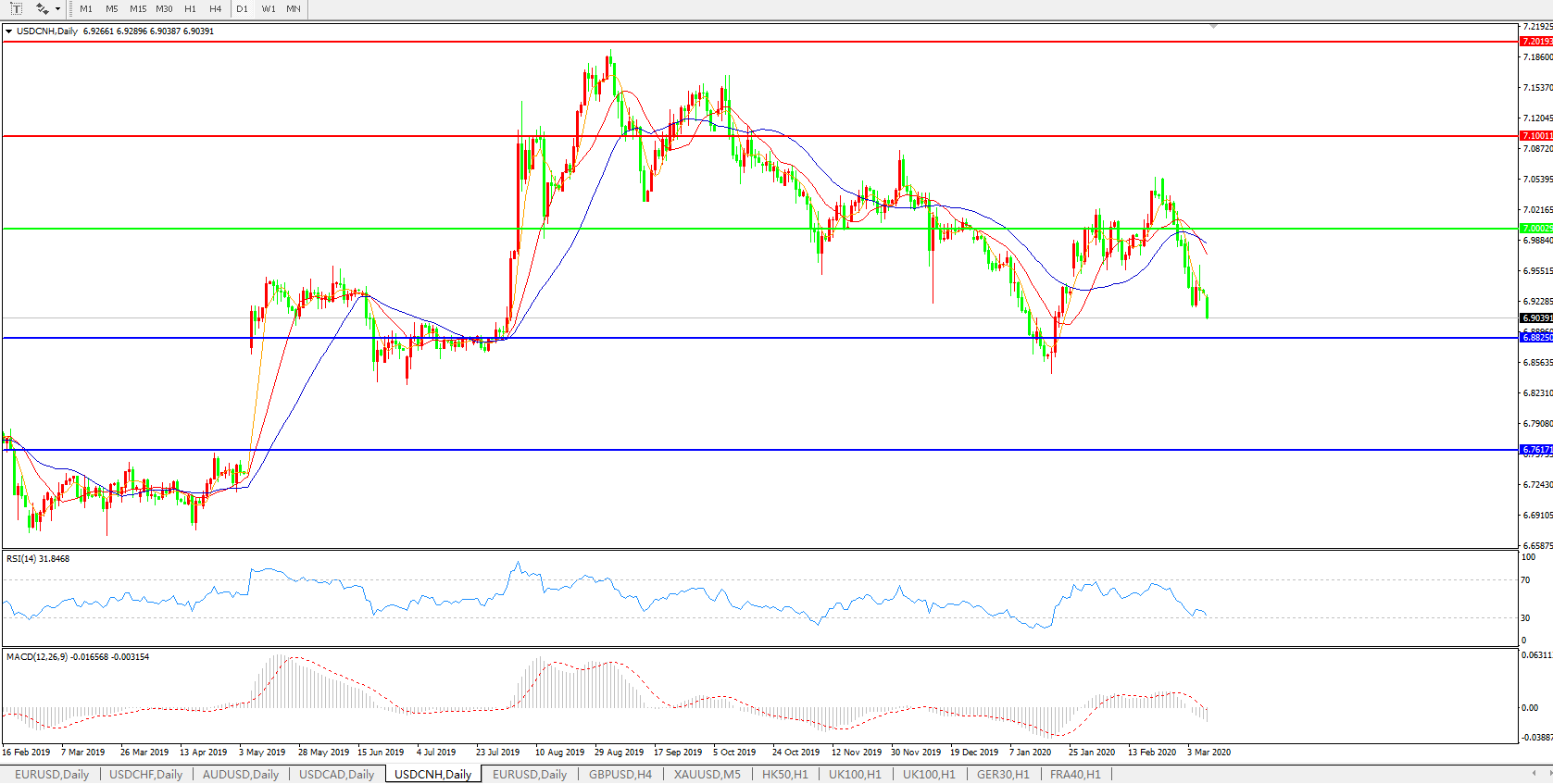交易策略: 在7.0000之下,看跌,目标价位为6.8820,然后为6.7600。