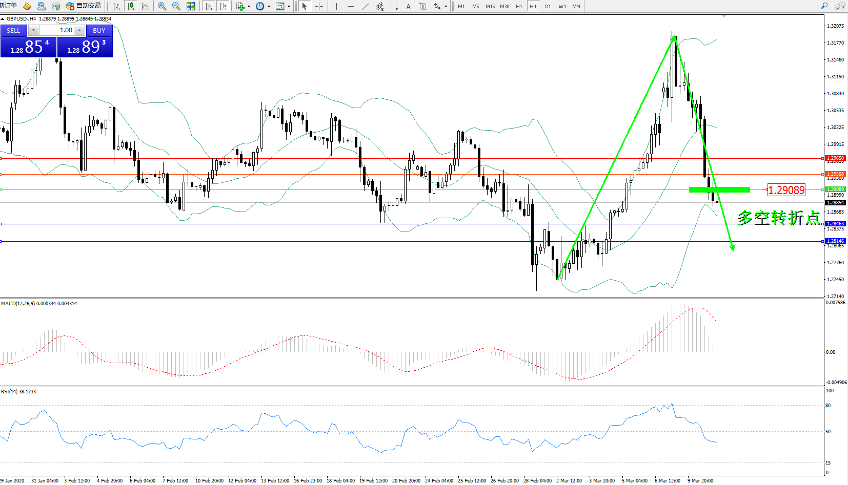 交易策略:1.29089下方看跌,目标1.284631.28146