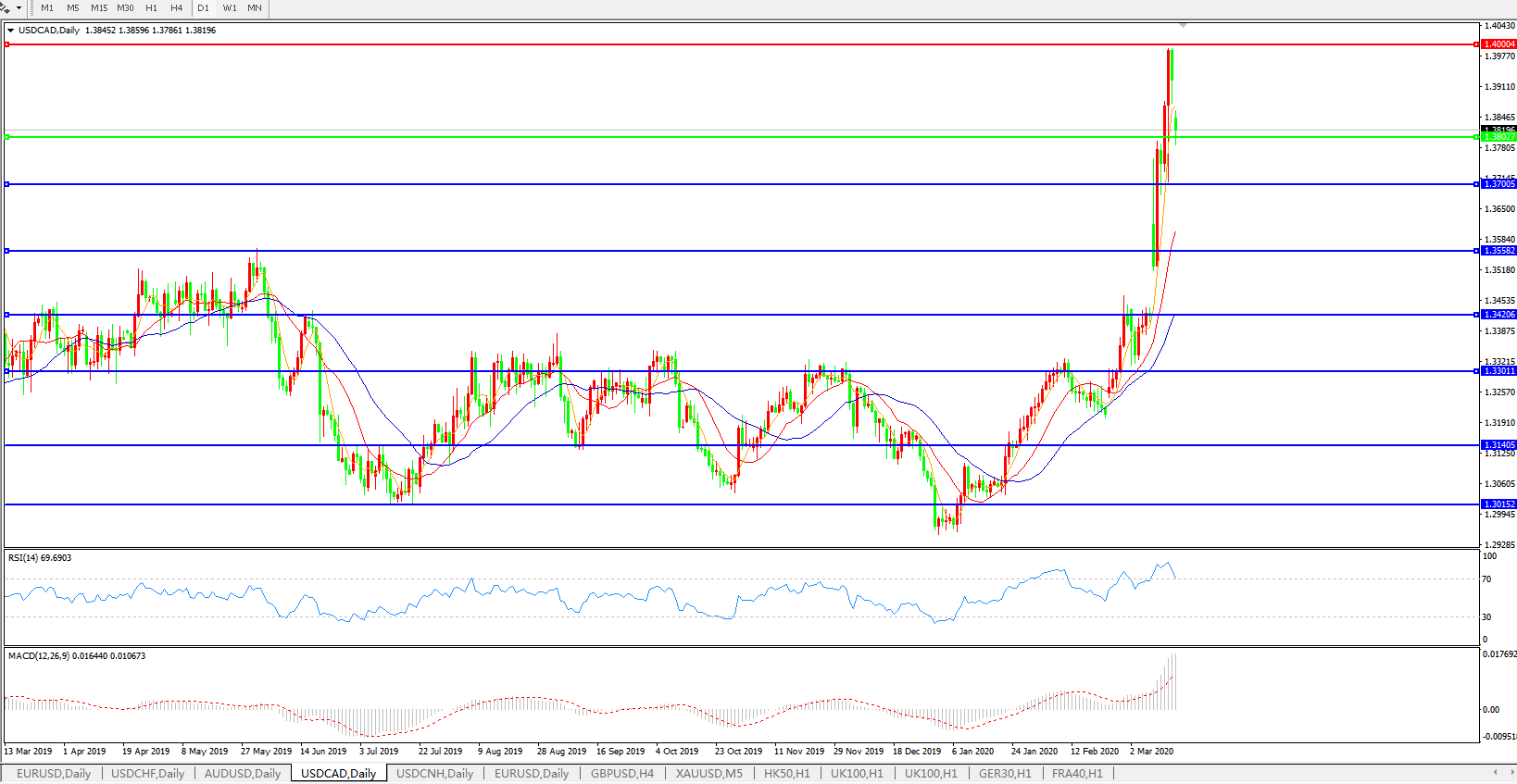 美元兑加元USDCAD 日线图: